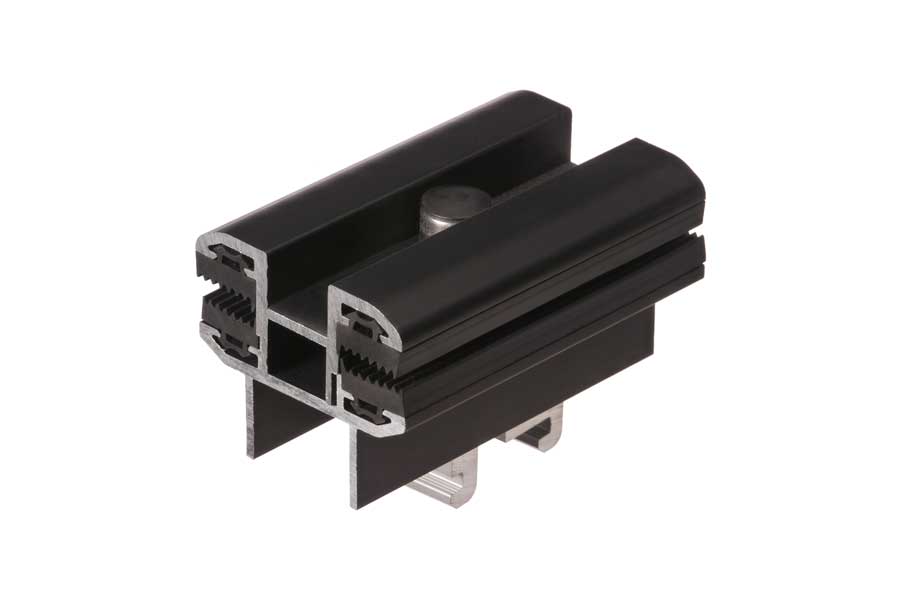 Die Klemme mit Erdungspin ist eine Modulklemme mit einem Dorn, der die Eloxalschicht der Module durchbohrt um einen elektrischen Kontakt herzustellen.