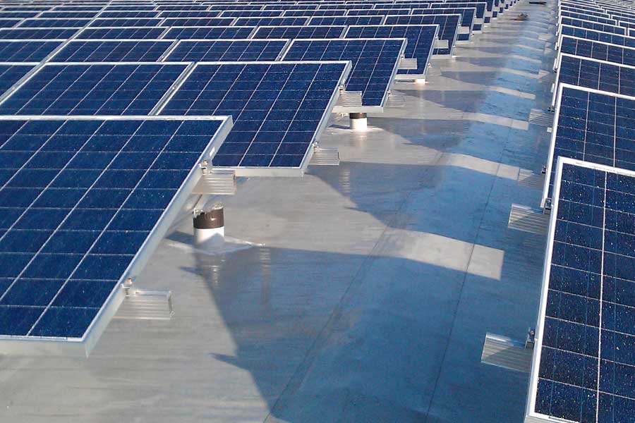 Auf tragenden Dächern können aufliegende DICONAL® Aufständerungs - Lösungen mit Ballast dachschonend realisiert werden.